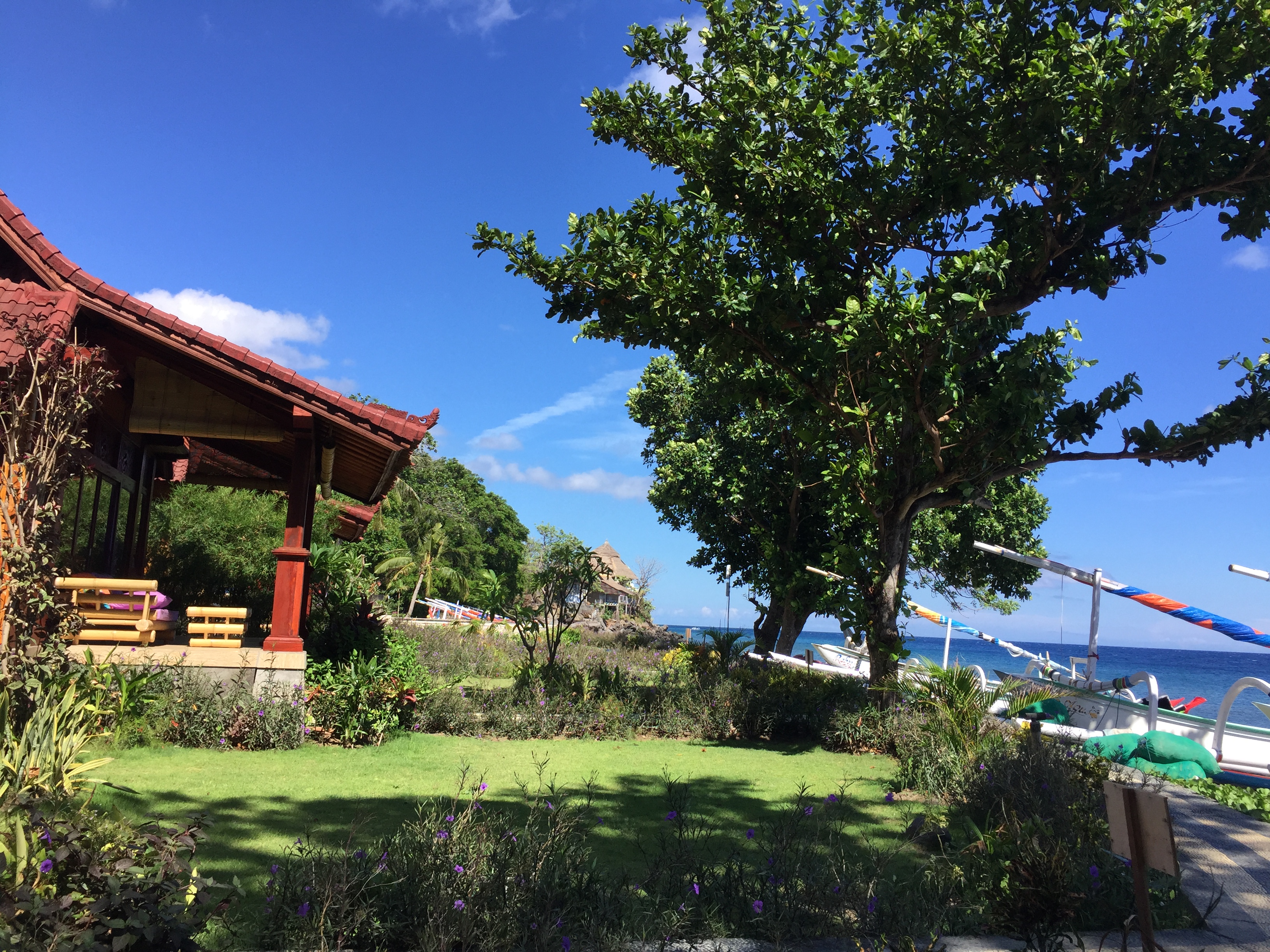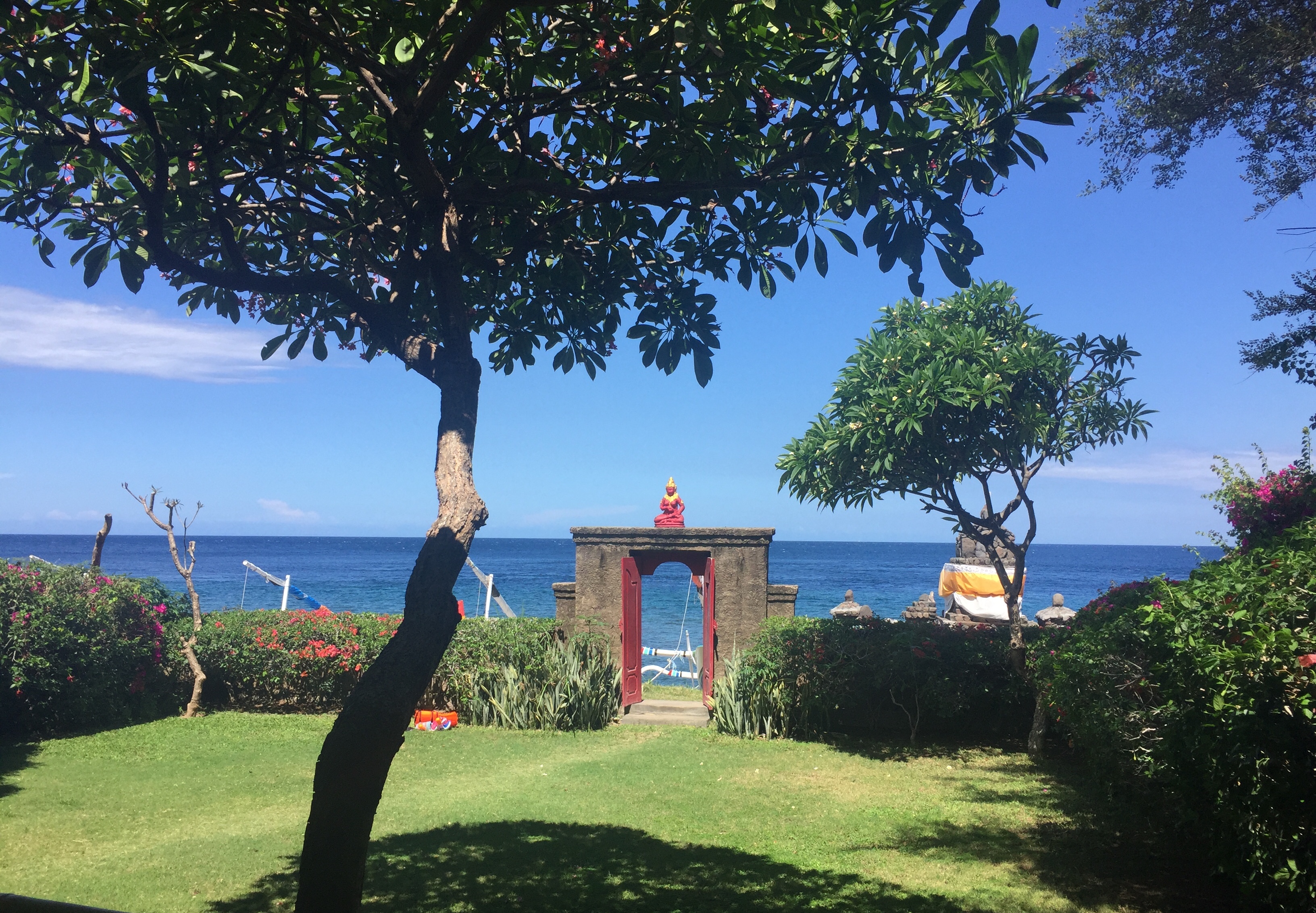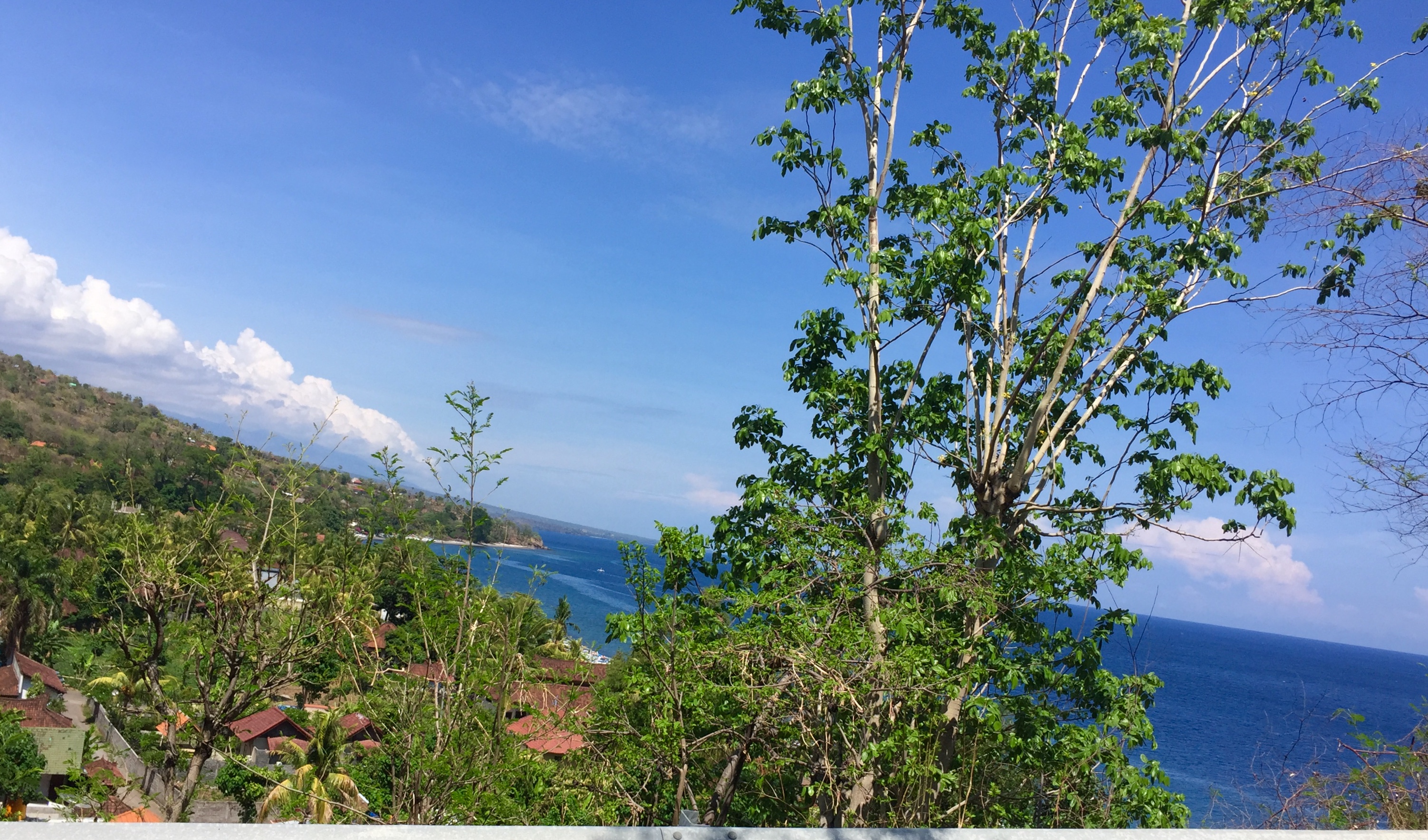 Amed : Snorkeling à l’Est de Bali, balade à scooter, farnientesylvie12 janvier 2019Bali0 Commentaire 0 Amed fut la 2eme étape de notre voyage à Bali du 1er au 15 décembre 2018. Nous avons quitté Canggu en fin d’après-midi le lundi 3 Décembre. Nous avons pris un taxi pour aller à Amed qui est situé à l’Est de Bali. La distance entre les 2 villes n’est que de 68 km mais nous avons mis 3 Heures. Nous avons payé 700K IDR. Je pense qu’en utilisant l’application Grab, on aurait payé moins cher. Beaucoup de circulation au début du parcours puis après être passés la ville de Candidasa nous avons roulé sur des petites routes montagneuses vers l’Est et sommes arrivés vers 21H à la guesthouse « Good Karma » Il s’agit d’une région encore authentique et très cool. C’est aussi le paradis du snorkeling et la barrière de corail n’est pas encore complètement détruite (ou en tous les cas en train de se reconstituer). Ici nous avons trouvé l’authenticité de Bali, les gens sont souriants et adorables ; La côte d’Amed est composée de 7 villages ; notre logement se trouve à Selang. Nous avons passé 3 jours à Amed à l’hôtel ‘Good Karma’ qui se trouve dans le village de Selang un seul mot TOP !! Le patron Baba est très connu dans la région. Voir la video de notre bungalow Juste en face des villas, il y a un spot de snorkeling, où l’on peut voir de superbes poissons. Pendant ces 3 jours nous avons loué un scooter et avons parcouru la côte, chaque jour, nous avons fait un spot différent de snorkeling ; La balade en scooter est superbe car nous surplombons la côte. 1er jour :Le 4/12/2018 Nous sommes partis à gauche de l’hôtel vers Banyuning et Aas ; la route est magnifique. Arrêt au AAS au restau « Smiling Boudha » (voir le panneau sur la gauche ‘smiling boudha’; hyper Zen et cool ; Le patron du restau nous indique l’endroit pour le snorkeling ; effectivement nous voyons de magnifiques poissons. Puis nous avons déjeuné au petit restau (110K idr). Tous les jours il y a un cours de Yoga à 17h ; je suis revenue le lendemain pour un cours (100k IDR). Le soir nous sommes allés manger un poisson grillé au warung Apik . Le patron nous a proposé de faire le taxi pour aller sur Ubud le Vendredi ; prix 500K Idr 2eme jour :Le 5/12/2018 Cette fois nous avons roulé de l‘autre côté (à droite de l’hôtel) et nous nous sommes arrêtés dans le hameau de Jemeluk (voir panneau Coral Garden) et avons trouvé là aussi un spot de snorkeling. La patronne, très souriante, nous montre les transats et nous dit que c’est gratuit mais il faut au moins prendre un verre. Nous avons évidemment déjeuner à cet endroit, profiter du snorkeling, et fait un massage à 60k Idr. Sur la route du retour nous nous sommes arrêtés dans le hameau de Lipah afin de voir le travail effectué par l’association Peduli Alam ; Il s’agit d’une association à but non lucratif pour la protection de la nature à Bali. Ils s’occupent de collecter les déchets et recycler une partie en fabriquant des sacs et accessoires. J’ai acheté un petit sac super mignon pour 200K Idr. 3eme jour : Le 6/12/2018 Nous avions prévu de faire une sortie en bateau de 2 heures, mais étant donné que nous avons eu une secousse de 5.7 pendant quelques secondes, j’ai eu un peu peur d’y aller ; Du coup nous sommes retournés en scooter vers le village principal d’Amed car nous devions changer des euros au bureau de change ; Nous nous sommes arrêtés au 2eme hameau plus bas et nous nous sommes installés sur les transats du « Sun Shine » ; là encore un superbe accueil, alors que nous n’étions pas logés dans cette guesthouse. Le patron est venu nous voir, demandant si tout allait bien. C’est à cet endroit que j’ai vu une murène. Le soir en cherchant un warung pour dîner, nous avons été attiré par la musique venant d’un petit hameau ; on s’est donc approché du lieu, et voyant que l’on était intrigué par l’atmosphère festive, un balinais nous a invité à entrer sur le lieux ; en fait c’était une cérémonie religieuse et nous avons pu admirer les danseuses balinaises (voir vidéo). C’était top car nous étions les seuls étrangers. Bilan de notre séjour à Amed: Super, cool, très beaux poissons à voir, magnifiques paysages, authentique ! 4 nuits 3 200 K Idr (soit 195 €) avec le petit-déjeuner compris En général, nous n’avons pas dépassé 400 K IDR (soit 24 €) pour le déjeuner et diner pour nous 2. Facebook Comments