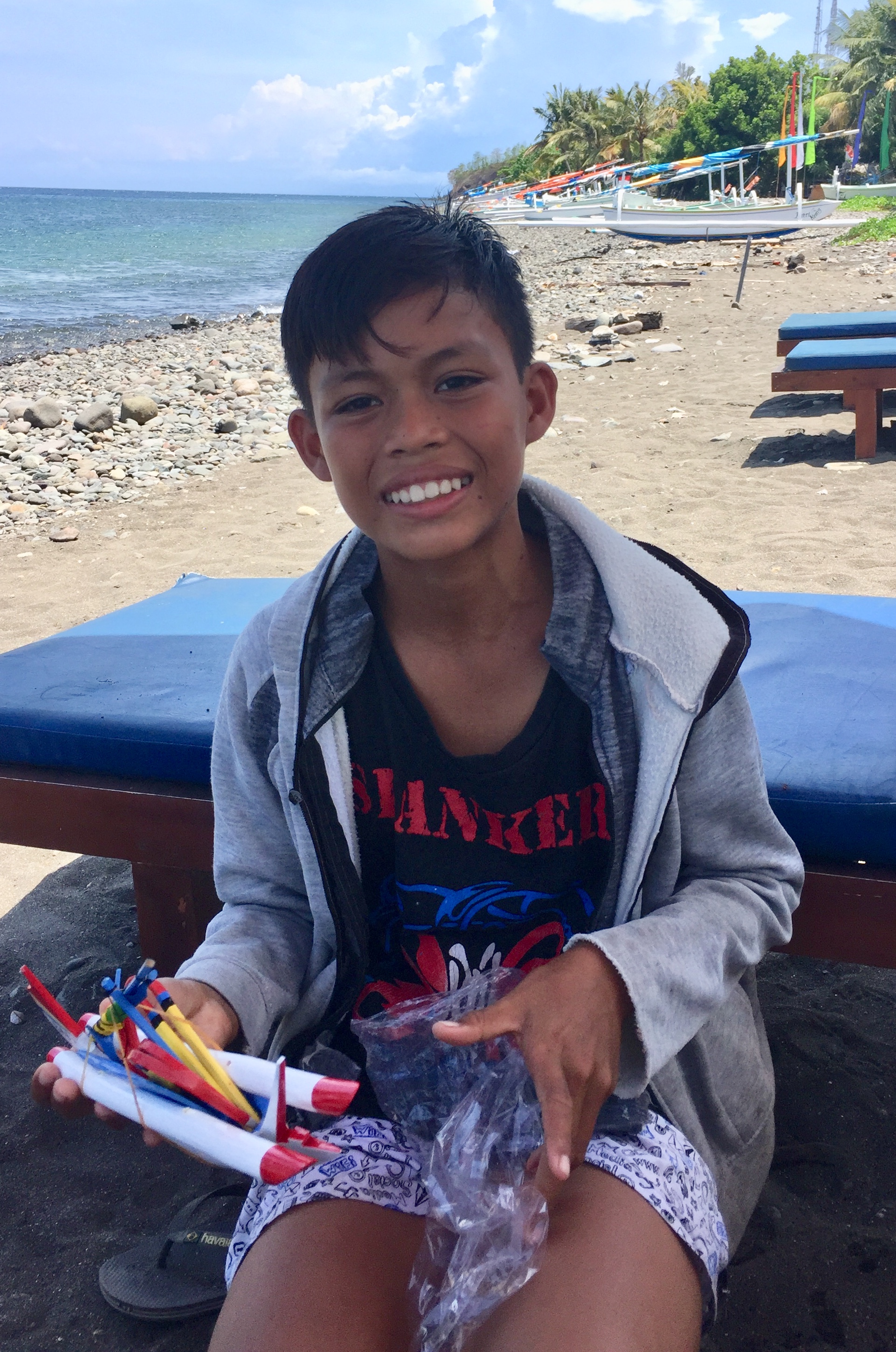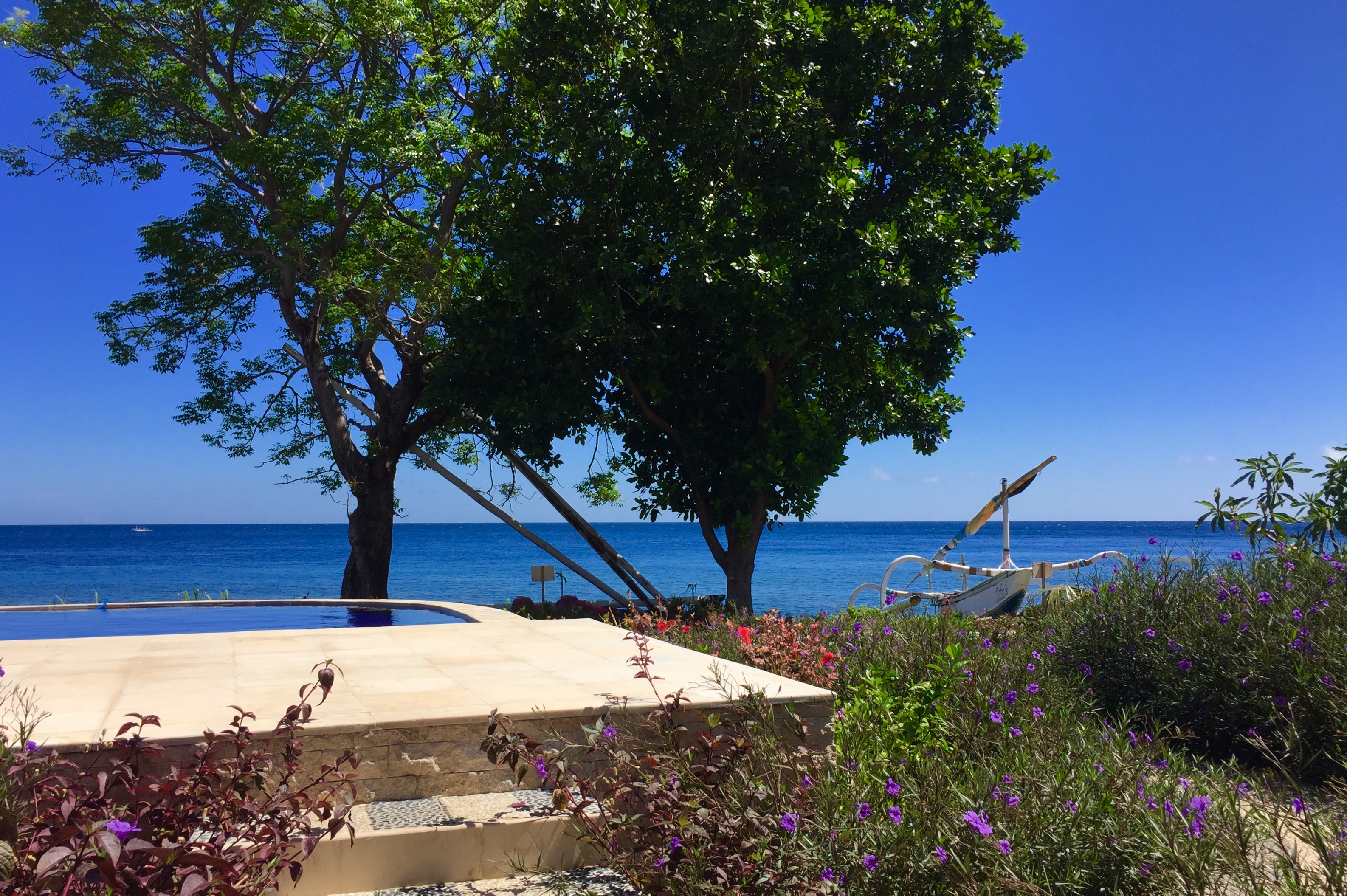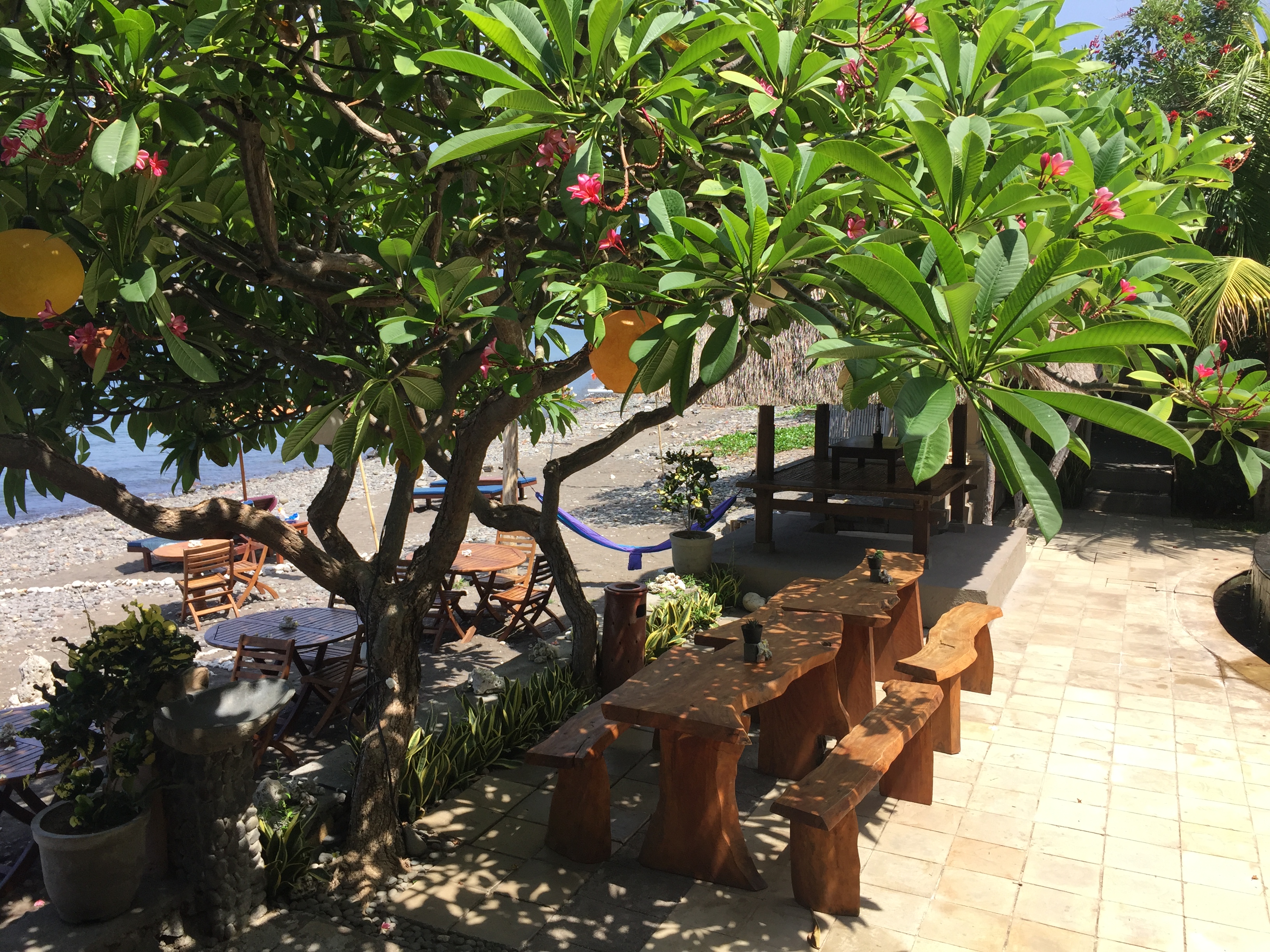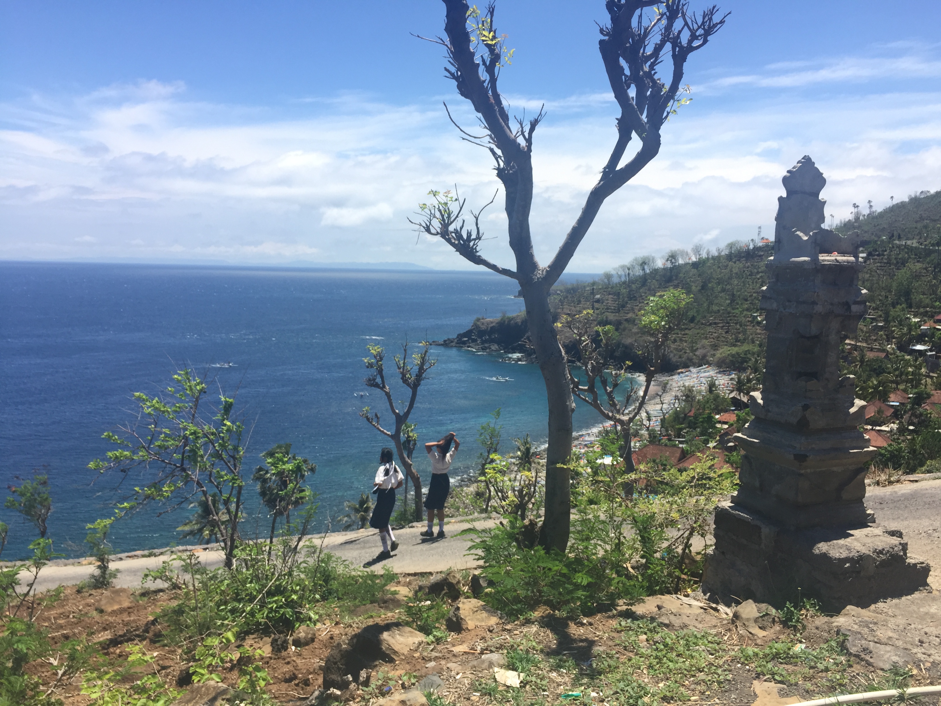 Amed : Snorkeling à l’Est de Bali, balade à scooter, farnientesylvie12 janvier 2019Bali0 Commentaire 0 Amed fut la 2eme étape de notre voyage à Bali du 1er au 15 décembre 2018. Nous avons quitté Canggu en fin d’après-midi le lundi 3 Décembre. Nous avons pris un taxi pour aller à Amed qui est situé à l’Est de Bali. La distance entre les 2 villes n’est que de 68 km mais nous avons mis 3 Heures. Nous avons payé 700K IDR. Je pense qu’en utilisant l’application Grab, on aurait payé moins cher. Beaucoup de circulation au début du parcours puis après être passés la ville de Candidasa nous avons roulé sur des petites routes montagneuses vers l’Est et sommes arrivés vers 21H à la guesthouse « Good Karma » Il s’agit d’une région encore authentique et très cool. C’est aussi le paradis du snorkeling et la barrière de corail n’est pas encore complètement détruite (ou en tous les cas en train de se reconstituer). Ici nous avons trouvé l’authenticité de Bali, les gens sont souriants et adorables ; La côte d’Amed est composée de 7 villages ; notre logement se trouve à Selang. Nous avons passé 3 jours à Amed à l’hôtel ‘Good Karma’ qui se trouve dans le village de Selang un seul mot TOP !! Le patron Baba est très connu dans la région. Voir la video de notre bungalow Juste en face des villas, il y a un spot de snorkeling, où l’on peut voir de superbes poissons. Pendant ces 3 jours nous avons loué un scooter et avons parcouru la côte, chaque jour, nous avons fait un spot différent de snorkeling ; La balade en scooter est superbe car nous surplombons la côte. 1er jour :Le 4/12/2018 Nous sommes partis à gauche de l’hôtel vers Banyuning et Aas ; la route est magnifique. Arrêt au AAS au restau « Smiling Boudha » (voir le panneau sur la gauche ‘smiling boudha’; hyper Zen et cool ; Le patron du restau nous indique l’endroit pour le snorkeling ; effectivement nous voyons de magnifiques poissons. Puis nous avons déjeuné au petit restau (110K idr). Tous les jours il y a un cours de Yoga à 17h ; je suis revenue le lendemain pour un cours (100k IDR). Le soir nous sommes allés manger un poisson grillé au warung Apik . Le patron nous a proposé de faire le taxi pour aller sur Ubud le Vendredi ; prix 500K Idr 2eme jour :Le 5/12/2018 Cette fois nous avons roulé de l‘autre côté (à droite de l’hôtel) et nous nous sommes arrêtés dans le hameau de Jemeluk (voir panneau Coral Garden) et avons trouvé là aussi un spot de snorkeling. La patronne, très souriante, nous montre les transats et nous dit que c’est gratuit mais il faut au moins prendre un verre. Nous avons évidemment déjeuner à cet endroit, profiter du snorkeling, et fait un massage à 60k Idr. Sur la route du retour nous nous sommes arrêtés dans le hameau de Lipah afin de voir le travail effectué par l’association Peduli Alam ; Il s’agit d’une association à but non lucratif pour la protection de la nature à Bali. Ils s’occupent de collecter les déchets et recycler une partie en fabriquant des sacs et accessoires. J’ai acheté un petit sac super mignon pour 200K Idr. 3eme jour : Le 6/12/2018 Nous avions prévu de faire une sortie en bateau de 2 heures, mais étant donné que nous avons eu une secousse de 5.7 pendant quelques secondes, j’ai eu un peu peur d’y aller ; Du coup nous sommes retournés en scooter vers le village principal d’Amed car nous devions changer des euros au bureau de change ; Nous nous sommes arrêtés au 2eme hameau plus bas et nous nous sommes installés sur les transats du « Sun Shine » ; là encore un superbe accueil, alors que nous n’étions pas logés dans cette guesthouse. Le patron est venu nous voir, demandant si tout allait bien. C’est à cet endroit que j’ai vu une murène. Le soir en cherchant un warung pour dîner, nous avons été attiré par la musique venant d’un petit hameau ; on s’est donc approché du lieu, et voyant que l’on était intrigué par l’atmosphère festive, un balinais nous a invité à entrer sur le lieux ; en fait c’était une cérémonie religieuse et nous avons pu admirer les danseuses balinaises (voir vidéo). C’était top car nous étions les seuls étrangers. Bilan de notre séjour à Amed: Super, cool, très beaux poissons à voir, magnifiques paysages, authentique ! 4 nuits 3 200 K Idr (soit 195 €) avec le petit-déjeuner compris En général, nous n’avons pas dépassé 400 K IDR (soit 24 €) pour le déjeuner et diner pour nous 2. Facebook Comments