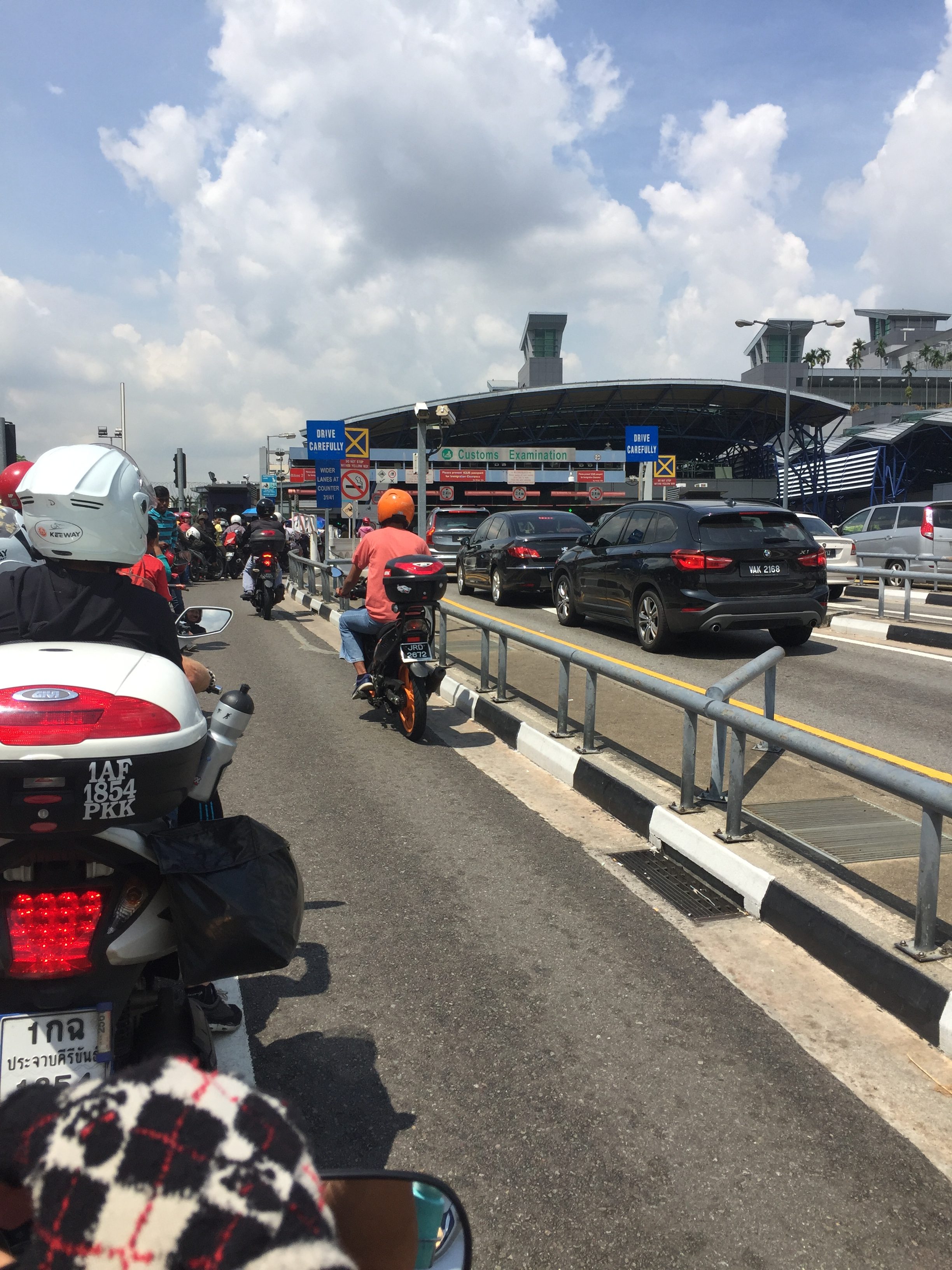 Que faire pour passer la frontière à scooter Thaïlande-Malaisie-Singapour ?sylvie21 mai 2018Conseils aux voyageurs2 commentaires 0 Vous trouverez dans cet article nos aventures et conseils sur les passages de frontière à scooter lors de notre voyage Thaïlande vers Singapoure en passant par la Malaisie. Frontière à scooter Thaïlande-Malaisie (Mercredi 11 Avril 2018) Permis international de circulation Lors de notre voyage Thaïlande-Singapore en scooter, (voir article Voyage à scooter Thaïlande-Malaisie-Singapour) nous sommes passés le 11 Avril 2018 à la frontière de Wang Prachang côté Thaïlande (Padang Bessar côté Malaisie). En lisant les forums, on nous avait dit que cette zone était à risque. Et finalement, tout s’est bien passé. Etant donné que nous sommes propriétaires de nos scooters et que ces derniers sont immatriculés en Thaïlande, nous avions fait traduire en anglais l’acte de propriété ‘Green Book’ par un traducteur officiel. Nous avions envoyé ce document à l’agence qui se trouve à la frontière afin qu’il nous prépare les documents suivants : • L’assurance obligatoire pour rouler en Malaisie (Zurich General Insurance Malaysia Berhad) • Les plaques d’immatriculation traduites pour La Malaisie • Le Permis international de circulation Le tout nous a coûté 1600 Bahts par scooter et l’assurance avait une durée d’1 mois. La petite agence qui s’occupe de ces documents se trouve à 100 mètre à droite en arrivant à la frontière. C’est un petit magasin ouvert peint en vert à l’intérieur. Les horaires d’ouverture sont : 8 :00 à 17 :00. Le téléphone est le suivant : 081-8987239/086-9539237 L’adresse mail : kayjang14@hotmail.com Petite agence pour les papiers des scooters pose des plaques d’imat pour pouvoir circuler en Malaisie Nous avions fait parvenir la traduction du green book à cette adresse mail. Lorsque nous sommes arrivés, à 10h du matin, les documents étaient prêts à l‘exception du permis international de circulation, que nous avons attendu jusqu’à 16h. (voir article Voyage en scooter Thaïlande-Malaisie-Singapour) la frontière ferme à 17h donc nous sommes partis très vite pour passer la frontière ; côté Thaïlandais, tout s’est bien passé, et nous avons obtenu le document d’exportation . Côté Malaisie ce fut juste au niveau ‘timing’ car il y a une heure de décalage horaire. Nous sommes passés au bureau pour les papiers d’exportation des motos. Et là ils nous ont dit qu’ils fermaient le bureau jusqu’au lendemain matin et qu’il fallait aller à 20 km côté Malaisie pour obtenir une signature. Nous nous y sommes rendus et là on nous a dit que les papiers étaient Ok et qu’on pouvait rouler sans problème en Malaisie Frontière à scooter Malaisie-Singapore : toute une histoire !!! (Jeudi 26 Avril 2018) Nous passons la frontière à scooter de Singapour le Jeudi 26 Avril : Journée Galère ! Nous arrivons vers 10h30 au poste frontière de Malaisie ; On passe sans problème. On traverse le pont pour aller au poste frontière de Singapour. C’est la course !! des milliers de 2 roues autour de nous qui foncent comme des malades ! 3 km plus loin, on comprend : énorme bouchon pour passer le poste ! On attend 2 heures sous un soleil de plomb 40 ° ! Il n’y a que 2 guichets d’ouvert ; on apprendra que 300 000 véhicules passent cette frontière à scooter tous les jours ! Et enfin nous passons ; pour les 6 personnes, pas de soucis nous obtenons le Tampon !!! Yes !!! 100 mètres plus loin, c’est le passage frontière pour les scooters ! et là c’est à nouveau compliqué !! Nous allons au bureau pour présenter les papiers. Nous avons le papier avec la traduction officielle de l’acte de propriété de la moto (green book), l’assurance que nous avons pris en Malaisie et sur laquelle il est spécifié qu’elle est valable pour Singapour ! L’employée de la douane nous annonce qu’il manque un papier : le ‘triple I’ International Insurance India Conpagnie ; what’s that ? la chef débarque dans le bureau et nous explique qu’il manque effectivement ce papier ; il s’agit d’une assurance spécifique pour Singapour ! On appelle la compagnie qui nous annonce que cette assurance n’est plus nécessaire pour les véhicules provenant de Thaïlande et ce, depuis 1 mois. Mais la chef insiste ; impossible de passer les motos sans cette assurance spécifique ! Elle nous trouve une autre assurance ; On peut l’acheter ONLINE mais on n’a pas de carte SIM et i n’y a pas de poste internet à la douane ! On décide que Hervé, qui a vécu 3 ans à Singapour, ira acheter cette assurance en scooter ; On attend l’autorisation du boss de la chef ! Le verdict tombe ¼ h après. NIET ! On n’a pas l’autorisation. Je commence à m’énerver car on boucle et on nous répète sans cesse la même chose ! Et j’ai mal à la tête et on me refuse un verre d’eau !!! et je déteste être enfermée dans un bureau ! Je propose que les filles aillent en taxi acheter cette fameuse assurance ! ça c’est OK ! Mais les hommes ne peuvent pas rester au poste frontière à cause des scooters qui sont garés depuis plus d’une heure devant le bureau de la douane. Donc retour Malaisie pour les mecs. Ils sont escortés par 6 douaniers pour traverser le pont dans l’autre sens et n’ont pas le droit de démarrer la moto ; il faut la pousser , et toujours sous le cagnard de 40 ° ; Bruno n’en peut plus et s’arrête 3 fois sur le chemin. Et tout ça sans eau !Ils ont l’impression qu’ils font une sortie prison !! Les 3 filles, nous arrivons en 1/2h en taxi à la compagnie des transports de Singapour qui va nous délivrer l’assurance. L’employé qui nous reçoit est au courant de notre situation ; on présente les papiers de la moto ! Il nous demande la copie des passeports des conducteurs, et leur permis de conduire international ! Heureusement on les a !! 